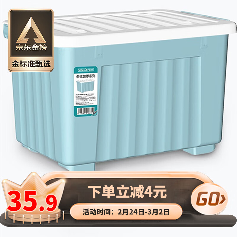 SPACEXPERT 塑料收纳箱 80L蓝色单只 衣物整理箱储物箱搬家箱打包箱 带轮39.90元