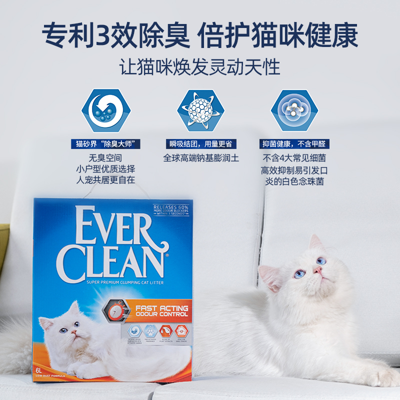 铂钻矿石猫砂EverClean活性炭除臭膨润土无尘可混合豆腐猫砂5.4kg