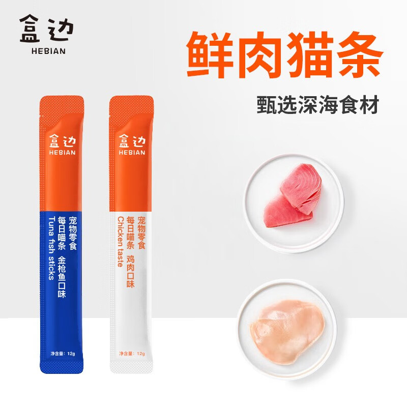 盒边宠物零食 冻干混合桶营养增肥发腮鸡肉粒肉干猫咪狗狗零食大礼包 鲜肉猫条10支*19.90元