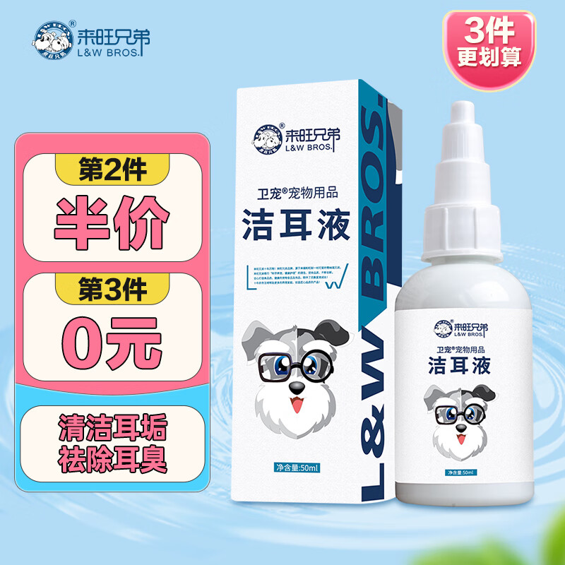 来旺兄弟猫咪洗耳液猫耳朵清洁狗狗耳垢清洁祛耳臭宠物滴耳液洗耳水50mL17.90元