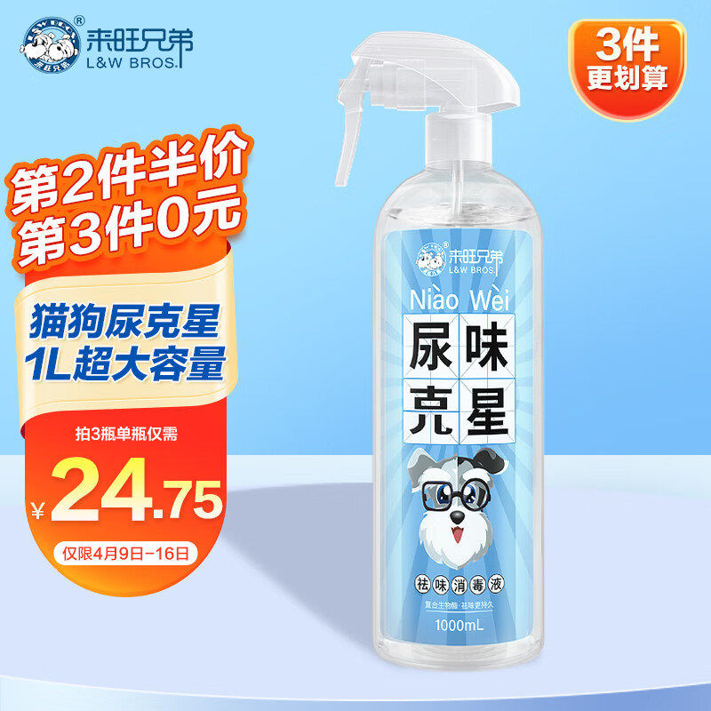 来旺兄弟宠物除臭喷雾猫尿除味剂消毒水猫狗尿生物酶分解去味清洁剂1000ml29.50元
