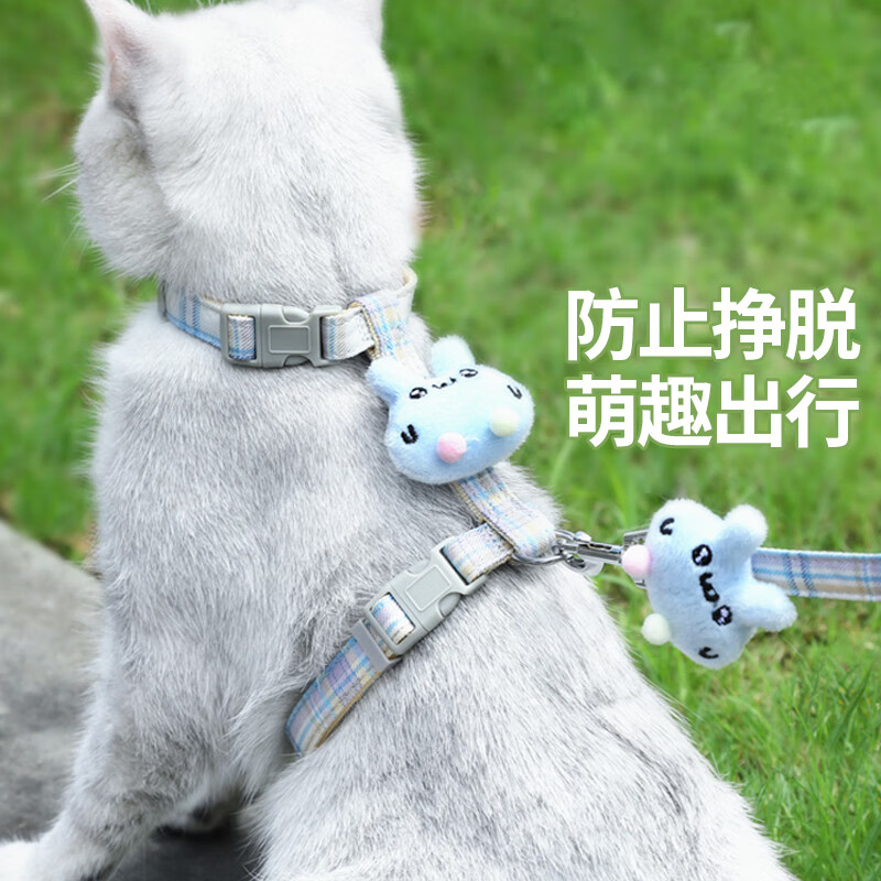 憨憨乐园猫咪牵引绳防挣脱外出专用溜遛猫绳链子兔宠物子胸背带可调节 蓝s