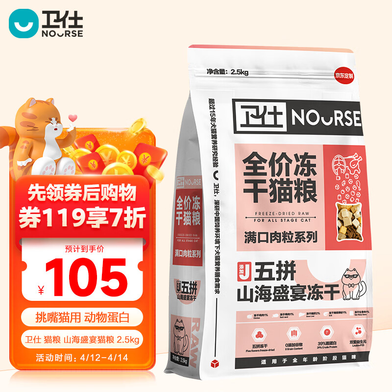 卫仕五拼冻干 山海盛宴猫粮2.5kg 卫士布偶蓝猫全阶段主粮 149.00元