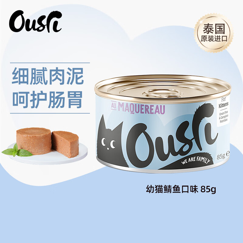 ousri泰国原装进口幼猫慕斯猫罐头 鸡肉鲭鱼 猫湿粮 猫咪零食85g/罐8.90元