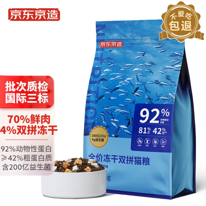 京东京造 冻干双拼益生菌高鲜肉全价猫粮 成猫幼猫6kg(鱼肉味)