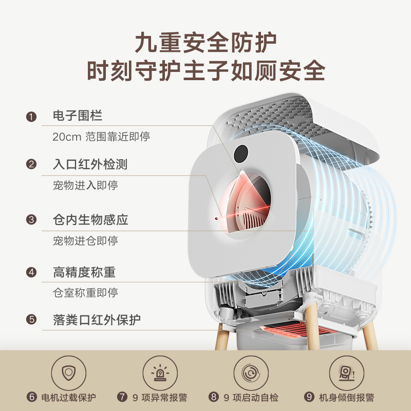 这款猫砂盆有莱茵宠物安全认证,9重安全守护,所以猫咪的安全性是毋庸置疑的;