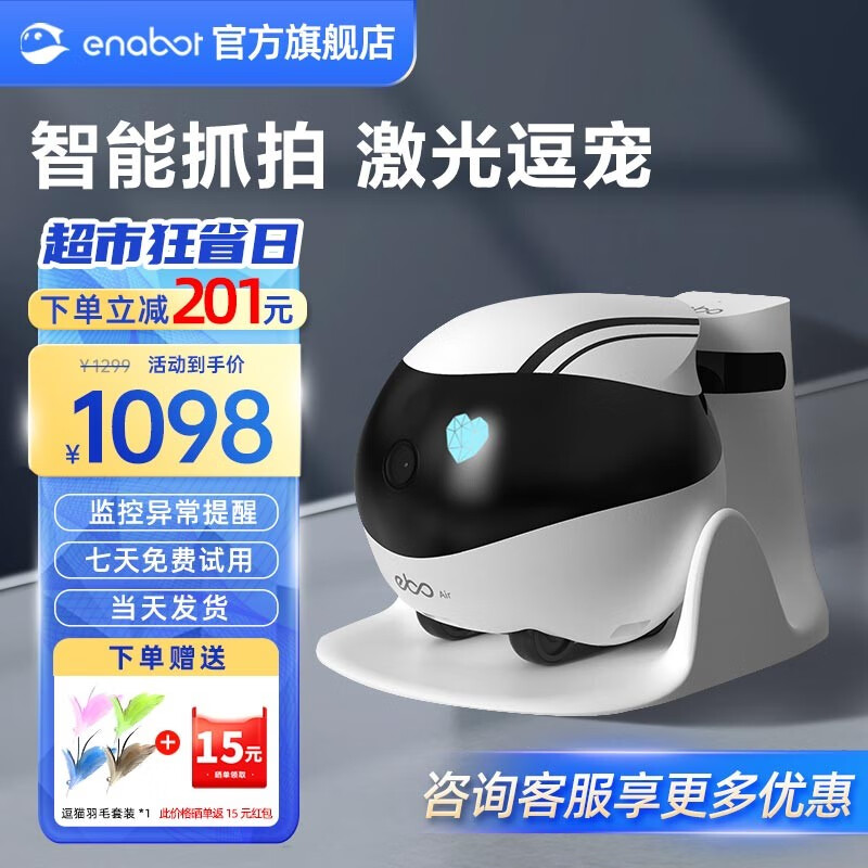 enabot ebo Air机器人家庭可移动监控老人小孩远程逗宠 双向通话互动 宠物AI智能玩伴 EBO AIR家庭守护机器人1098.00元