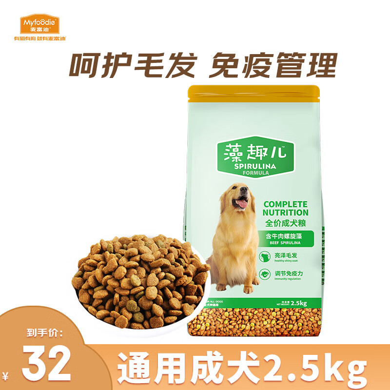 麦富迪狗粮 藻趣儿2.5kg 成犬中大型小型犬通用(牛肉螺旋藻)金毛泰迪30.00元