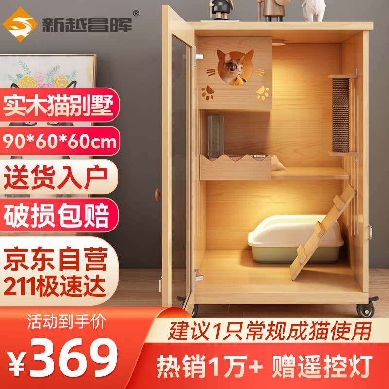 ①新越昌晖猫笼猫别墅实木猫柜猫笼子大号家用宠物猫窝猫舍 高90宽60深60cm,限时秒杀,领取优惠券叠加礼金,到手309元