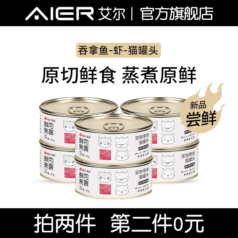 艾尔(Aier)鲜肉来袭系列猫罐头 宠物猫咪零食猫湿粮罐头零食罐 吞拿鱼虾*669.00元