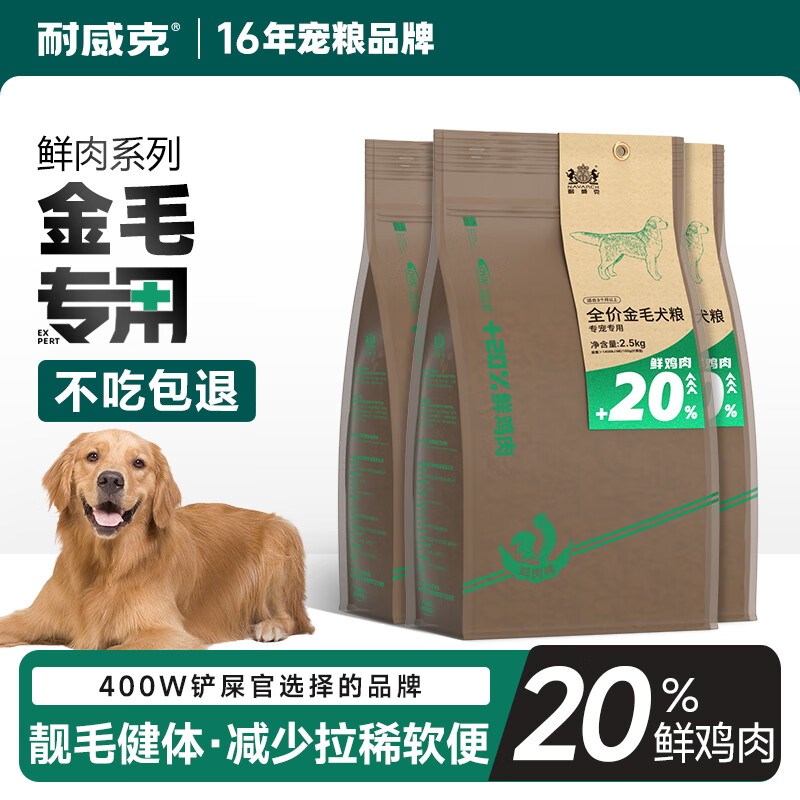 耐威克全价金毛专用狗粮7.5kg 20%鲜肉升级 3个月以上成犬幼犬金毛通用199.00元