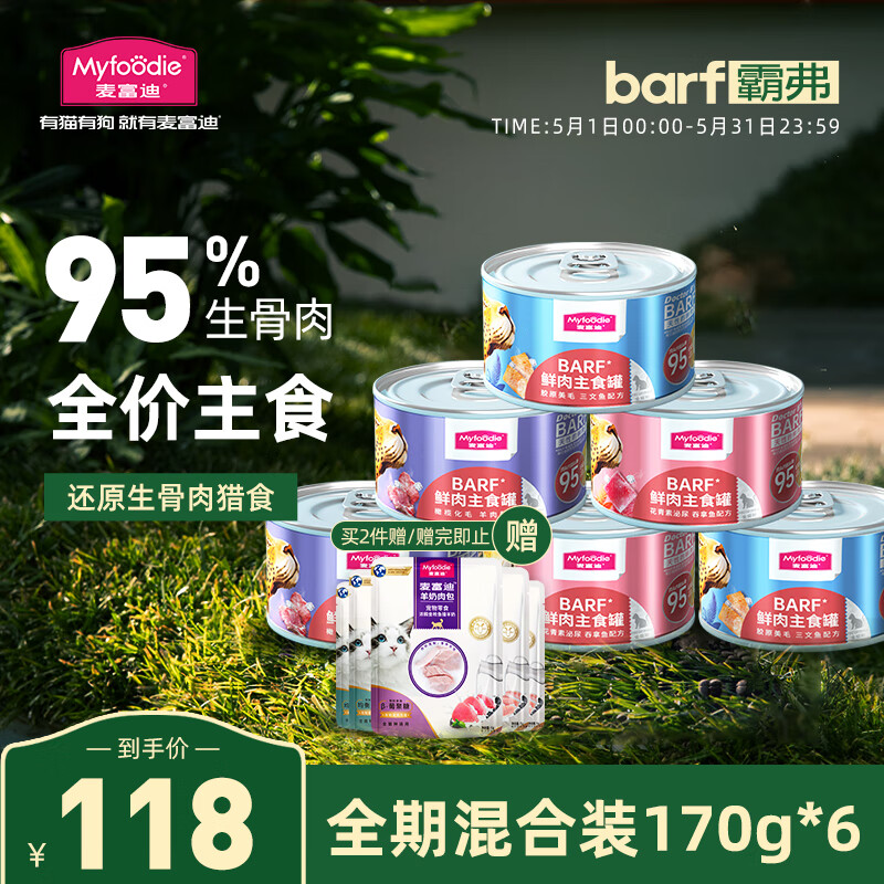 麦富迪 猫罐头主食罐头 成猫幼猫粮barf全价猫湿粮营养猫零食混合170g*699.00元