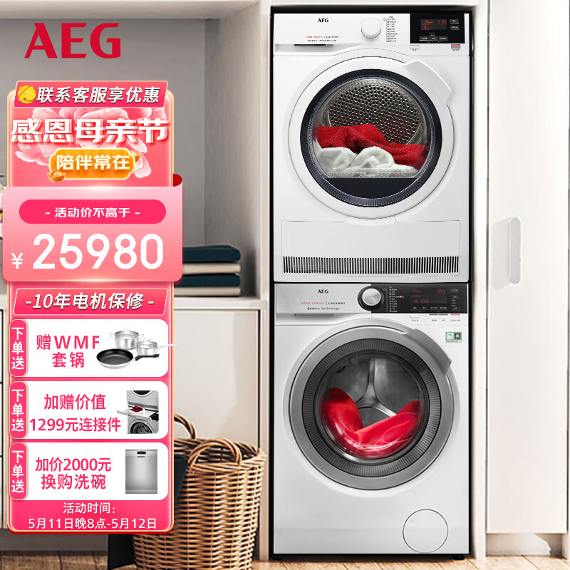 AEG原装进口8系9公斤滚筒洗衣机+7系8公斤热泵烘干机洗烘套装 羊毛绿标认证L8FEC9412N+T7DEG83425680.00元